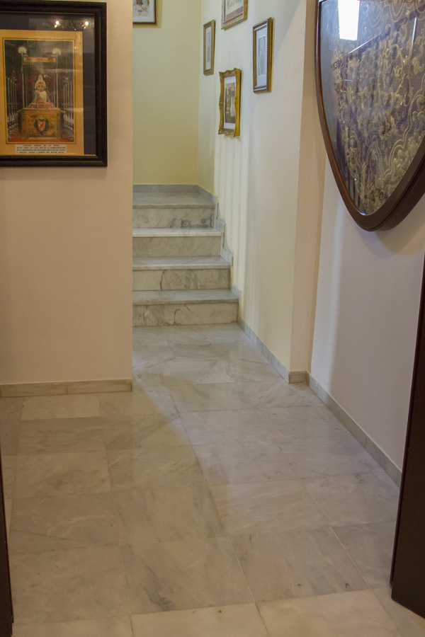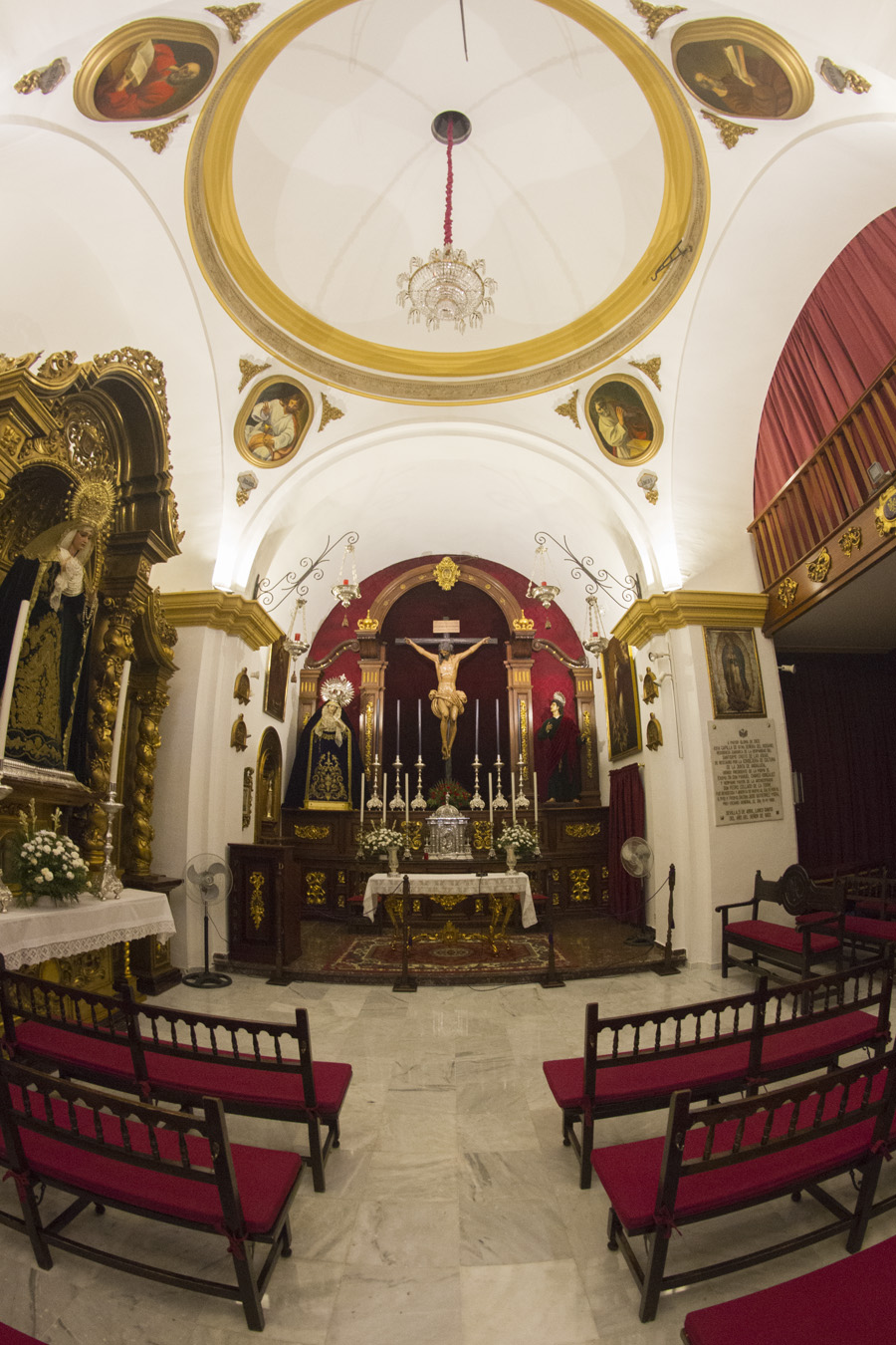 Entre las actuaciones acometidas, cabe destacar el pulido de la solería así como la reposición de piezas que se encontraban defectuosas, recuperando el brillo perdido con el paso de los años. Así mismo, se ha efectuado la pintura completa del Templo, cúpula incluida, sobre la que hacía bastante más de diez años que no se efectuaba trabajo alguno, pese a estar expuesta al humo propio de las velas de cultos. Con dicha pintura, se ha clareado la Capilla para acrecentar la sensación de limpieza y luminosidad de la misma.